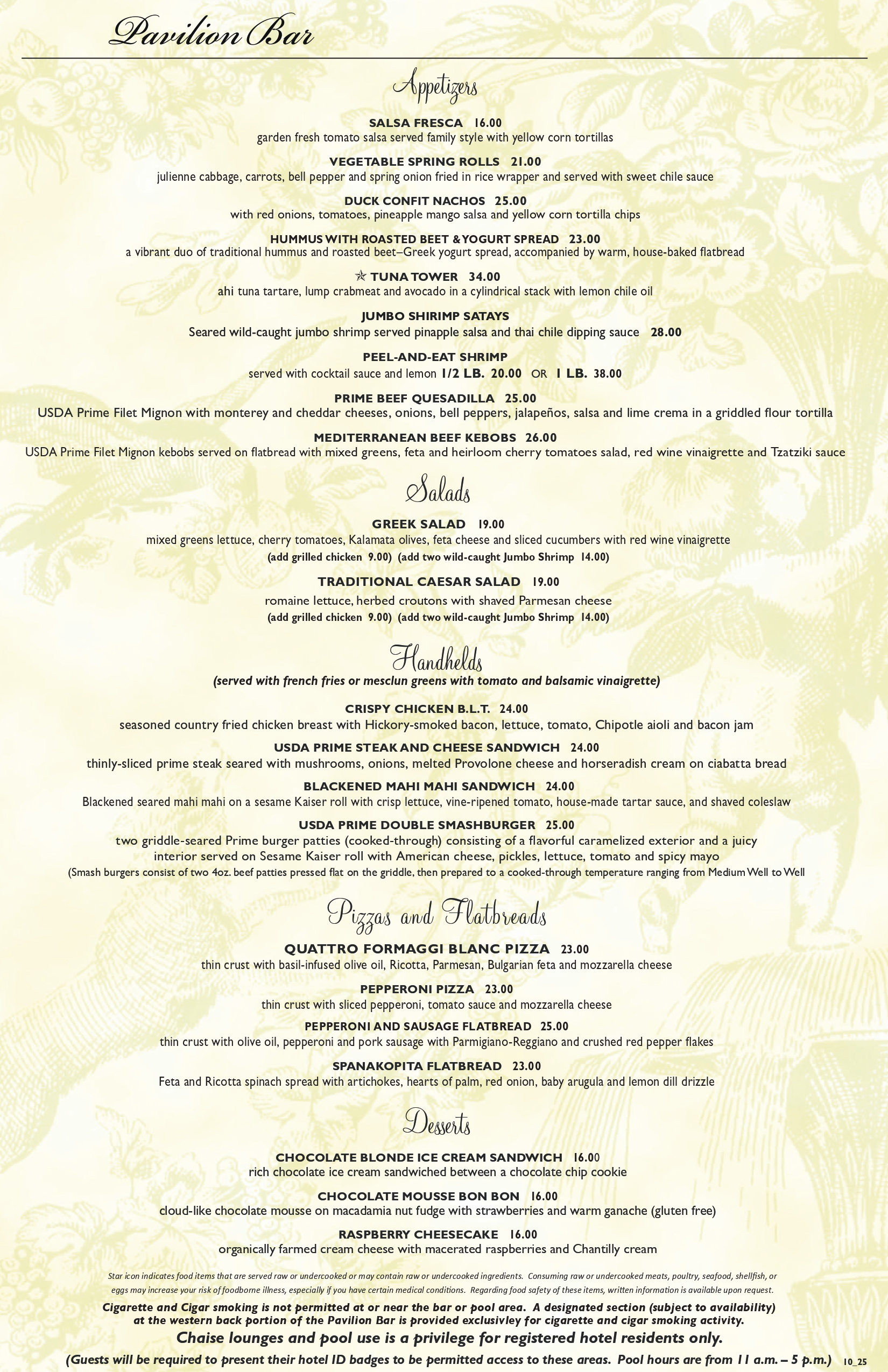Enjoy the casual but superb fare from the Pavilion Bar.